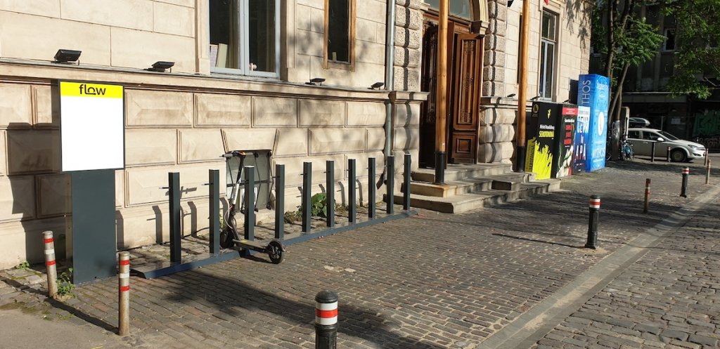 Aveam treabă la hotelul Sheraton de pe Calea Dorobanților și am observat că se montează o parcare de trotinete în fața cazinoului hotelului. Am văzut sigla Flow și am întrebat muncitorii dacă se și încarcă trotinetele prin acel rastel și mi-au spus că da.