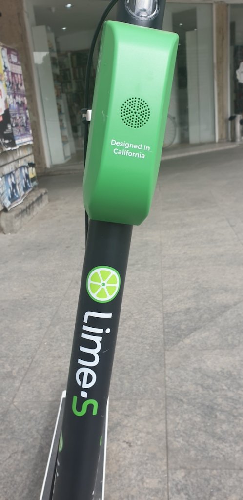 Față de Wolf-e și Flow, trotinetele Lime sunt mai robuste, cu ghidon foarte înalt. Pe țeava din față este montat un difuzor: cînd ești aproape de o trotinetă și nu o vezi, poți suna prin aplicație și te ghidezi după alarmă ca să o găsești în teren. Există de asemenea sunete specifice cînd o deblochezi și o blochezi și cînd încerci să o miști atunci cînd e blocată.