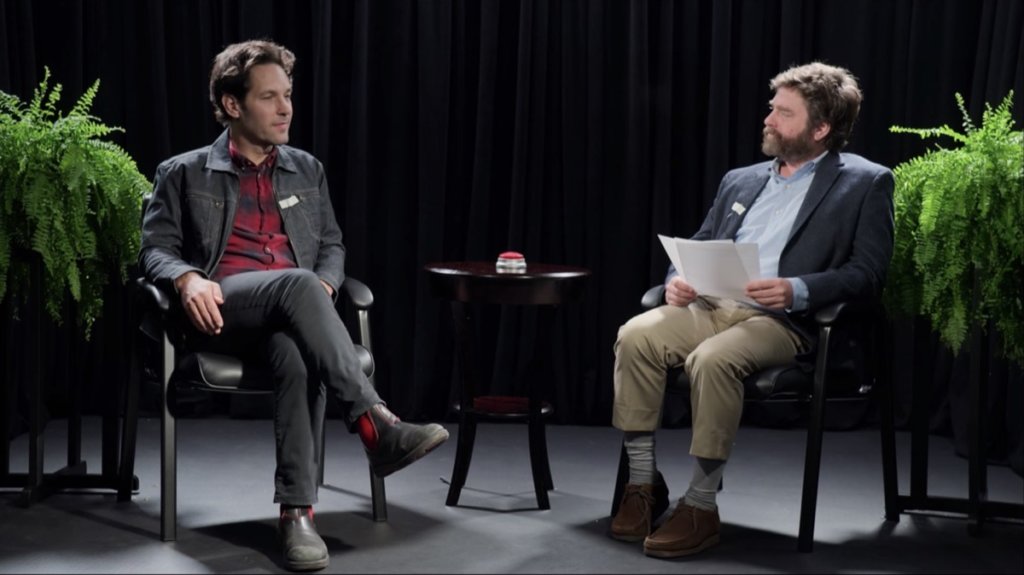 Înainte de a vedea filmul, ar fi bine să vedeți măcar 2-3 clipuri din seria “Between Two Ferns” realizată de Zach Galifianakis: interviuri scurte, foarte ciudate, cu actori și cîntăreți celebri. Revenind la film, veți avea parte și aici de unele secvențe din interviuri, iar pelicula se vrea un mockumentary despre cum s-a realizat celebra serie.