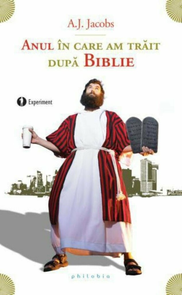 Niciodată n-am râs atât de mult citind o carte despre religie. Și nu e vorba de blasfemie sau cine știe ce altceva. Dar cum să nu râzi când un tânăr își pune în gând să trăiască un an de zile respectând toate regulile clar enunțate sau deduse din Biblie? Nu doar ideea în sine este rizibilă, ci mai ales modul în care A.J. Jacobs își povestește experiențele. Țineți cont că este același om care a scris o carte despre cum a citit Enciclopedia Britanica integrală! Ca să vă conving de la început, iată un fragment referitor la faptul că nu avea voie să atingă obiectele atinse de soția lui, care se afla la ciclu: